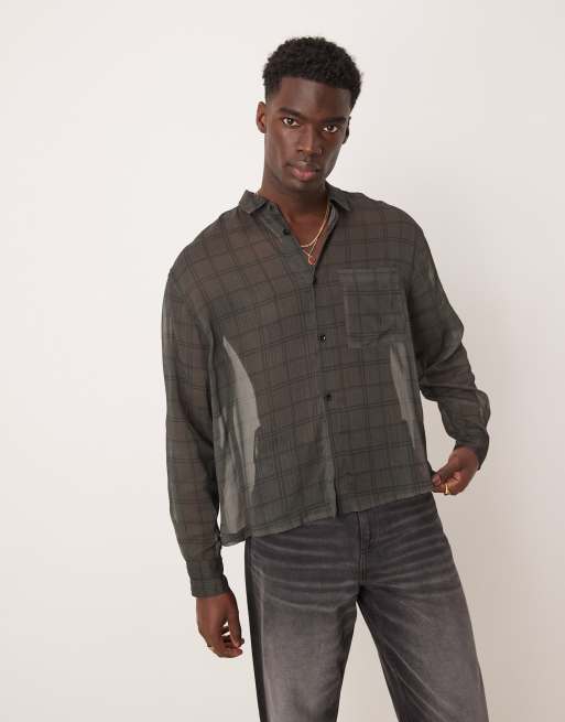 ASOS DESIGN - Camicia oversize in chiffon marrone a quadri