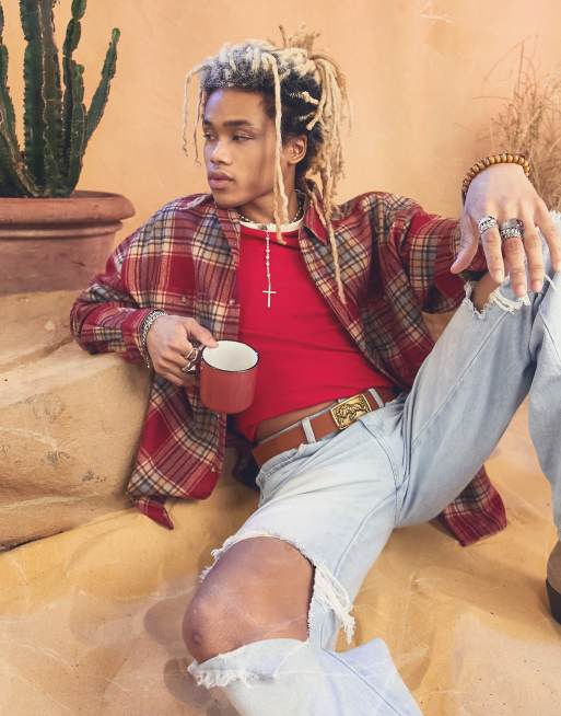 ASOS DESIGN - Camicia oversize in misto lana rossa a quadri stile anni '90