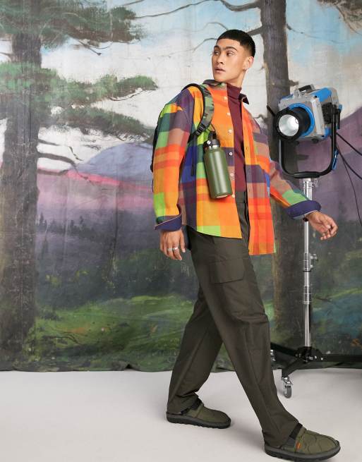 ASOS DESIGN - Camicia oversize in pile arcobaleno a quadri in stile anni '90