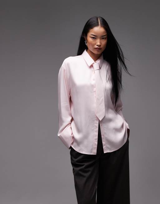 ASOS DESIGN - Camicia oversize in raso rosa con laccio