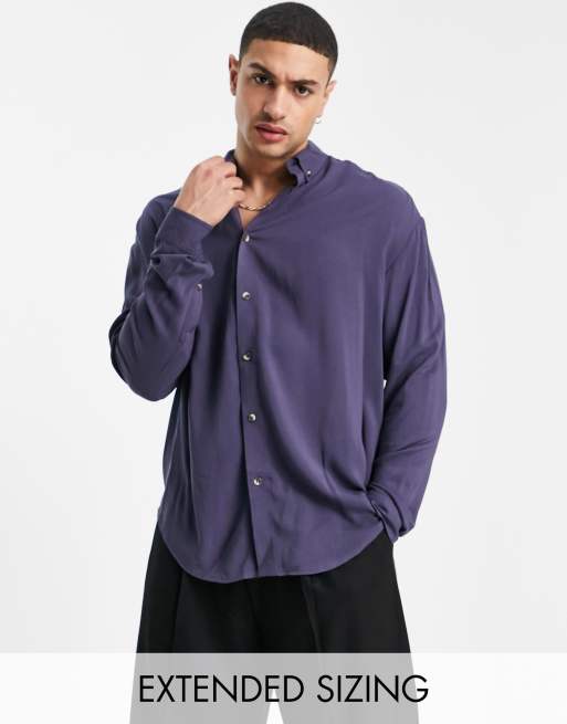 ASOS DESIGN - Camicia oversize in viscosa blu navy in stile anni '90