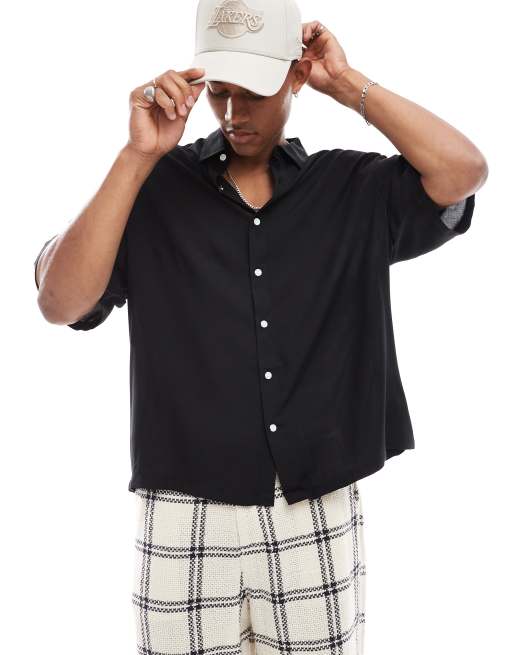 ASOS DESIGN - Camicia oversize in viscosa nera