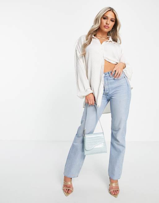 ASOS DESIGN - Camicia oversize plissé crema