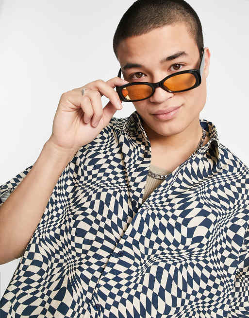 ASOS DESIGN - Camicia oversize squadrata a quadri distorti blu navy