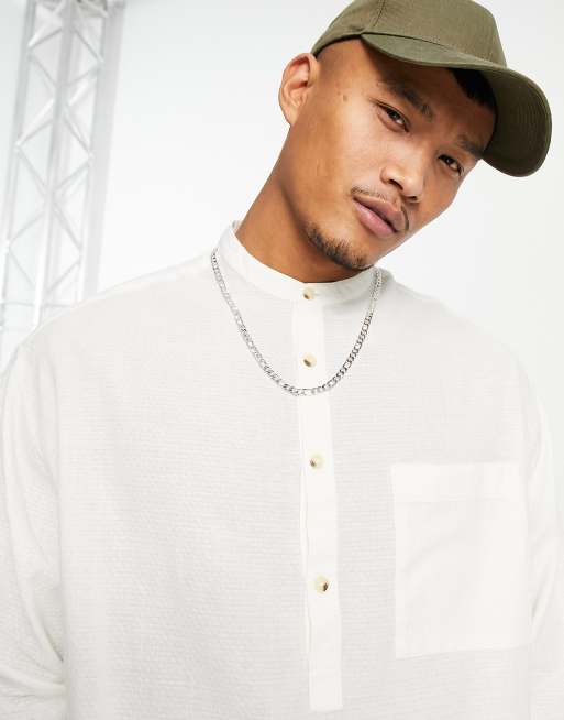 ASOS DESIGN - Camicia oversize squadrata in cotone con collo serafino