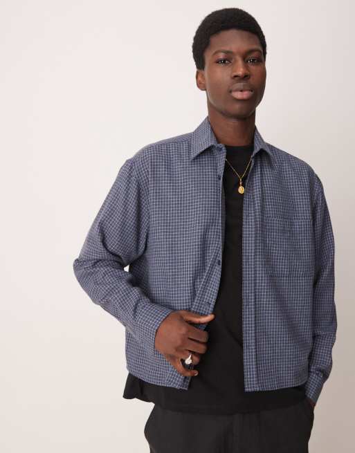 ASOS DESIGN - Camicia oversize squadrata in flanella blu a quadri