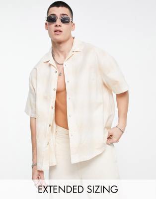 ASOS DESIGN - Camicia oversize squadrata in lino beige a quadri con rever