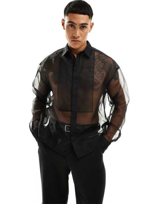 ASOS DESIGN - Camicia oversize stile anni '90 in organza nera