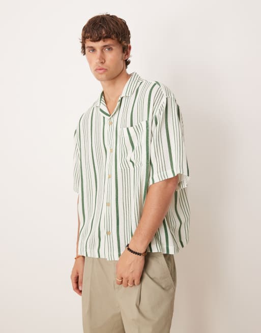 ASOS DESIGN - Camicia oversize verde a righe con rever