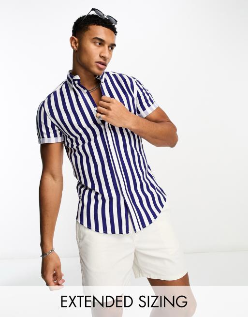 ASOS DESIGN - Camicia Oxford slim elasticizzata blu navy a righe