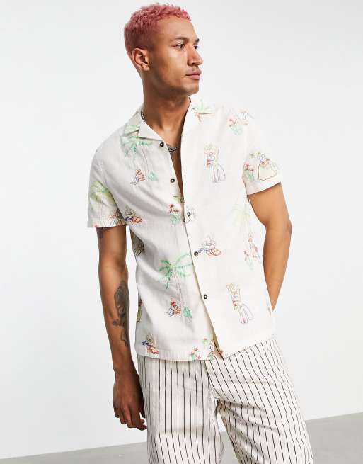 ASOS DESIGN - Camicia regular fit in misto lino con ricamo di sombrero