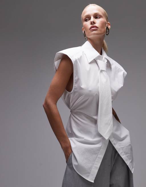 ASOS DESIGN - Camicia senza maniche con cravatta e spalle imbottite