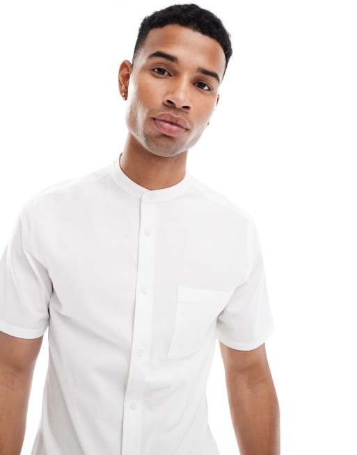 ASOS DESIGN - Camicia slim bianca con collo serafino e tasche