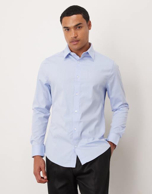 ASOS DESIGN - Camicia slim fit blu testurizzata