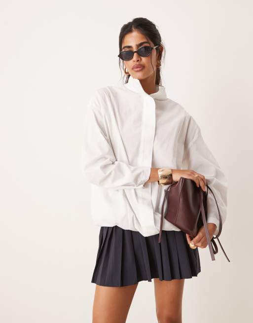 ASOS DESIGN - Camicia sportiva bianca con scollo a imbuto