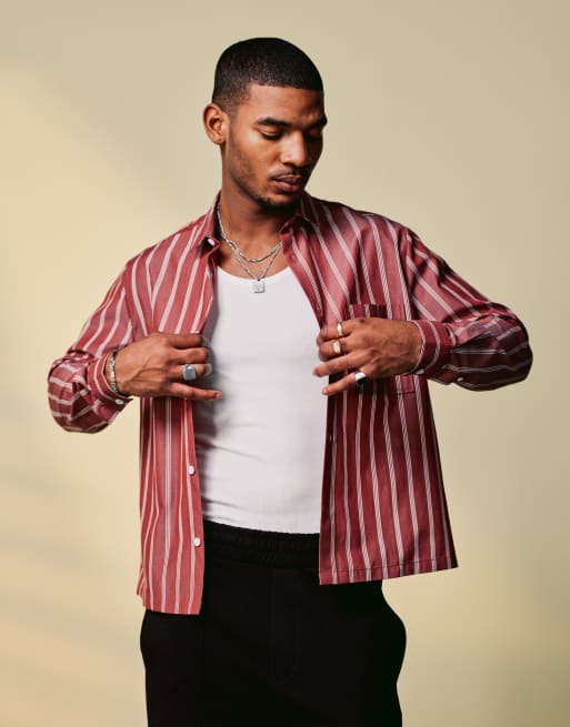 ASOS DESIGN - Camicia squadrata bordeaux a righe