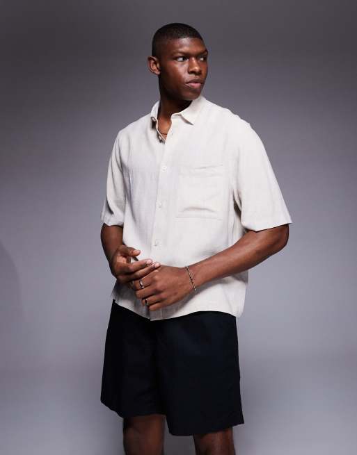 ASOS DESIGN - Camicia squadrata color pietra in misto lino