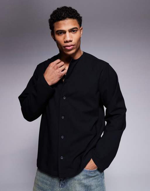 ASOS DESIGN - Camicia squadrata comoda nera senza colletto