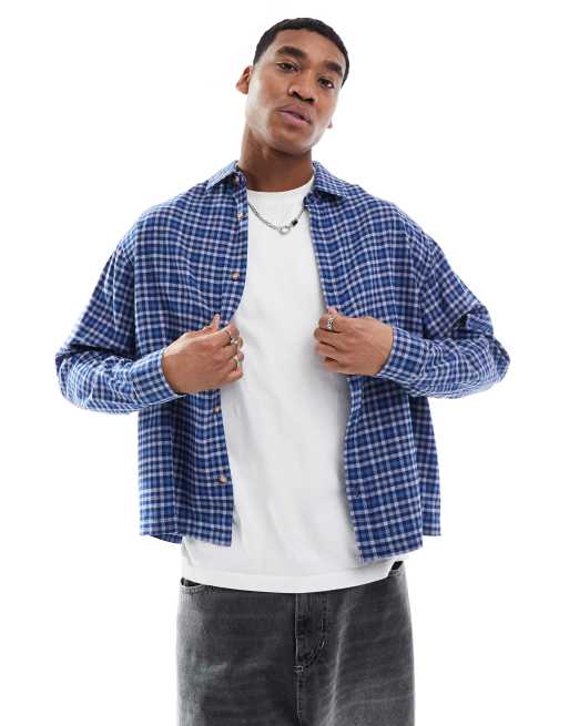 ASOS DESIGN - Camicia squadrata oversize a maniche lunghe blu a quadri dad