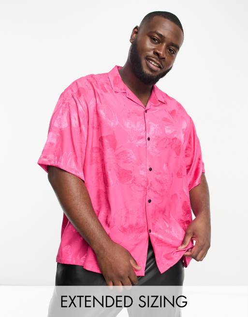 ASOS DESIGN - Camicia squadrata oversize con rever in jacquard rosa a fiori