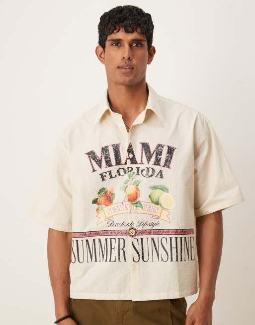 ASOS DESIGN - Camicia squadrata oversize écru con stampa
