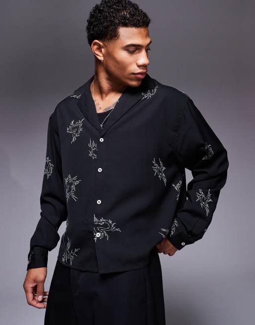 ASOS DESIGN - Camicia squadrata oversize nera con stampa di cuore e rever