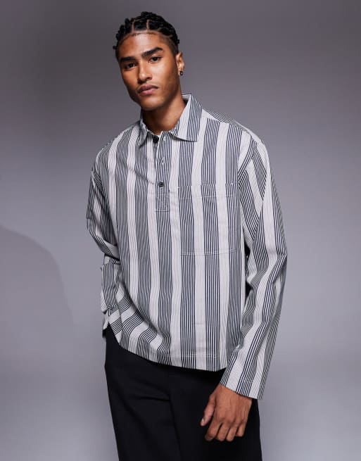 ASOS DESIGN - Camicia squadrata oversize nera e bianca a righe
