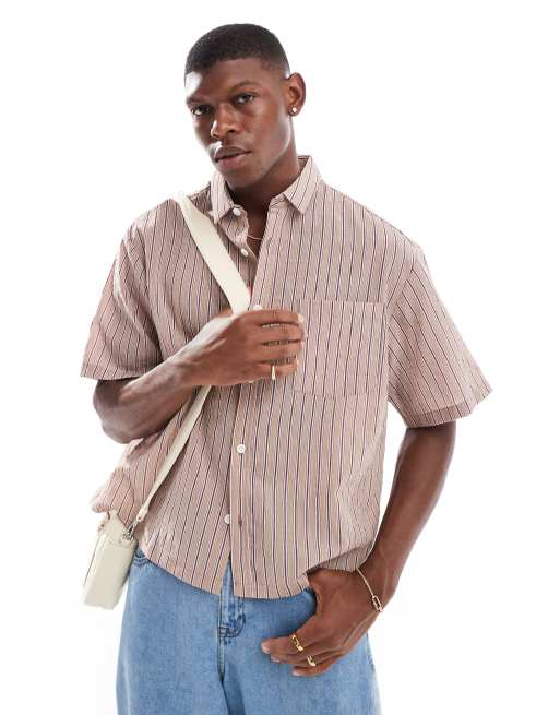 ASOS DESIGN - Camicia squadrata oversize rosa a righe testurizzate