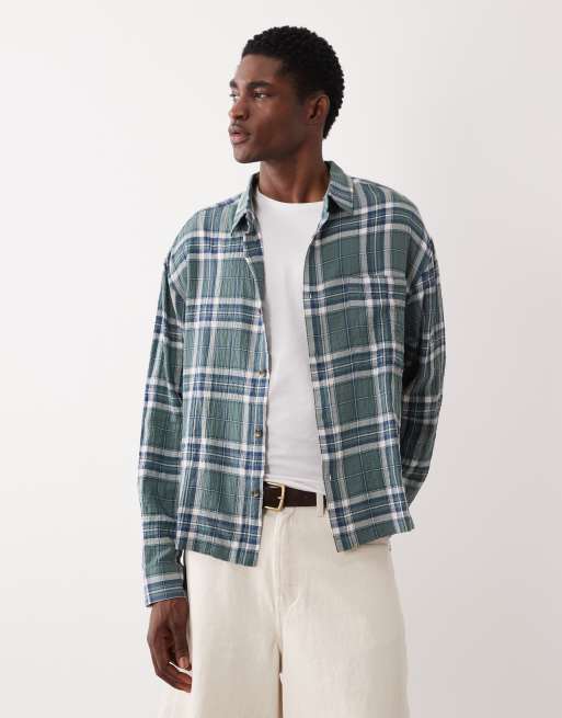ASOS DESIGN - Camicia squadrata oversize testurizzata verde scuro a quadri