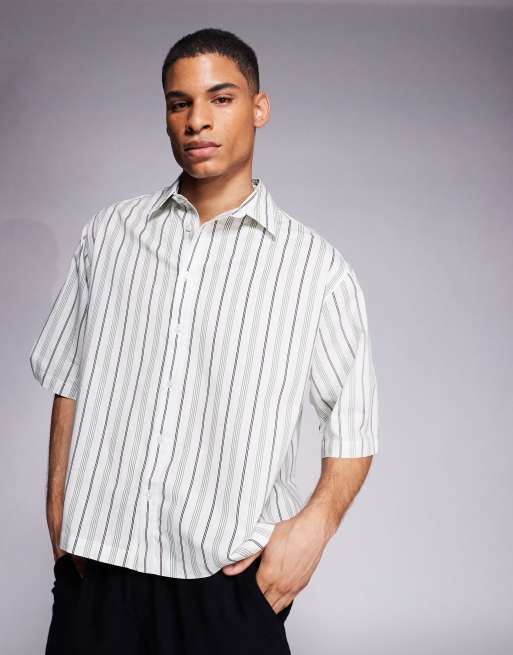 ASOS DESIGN - Camicia squadrata regular fit a righe bianche e verdi