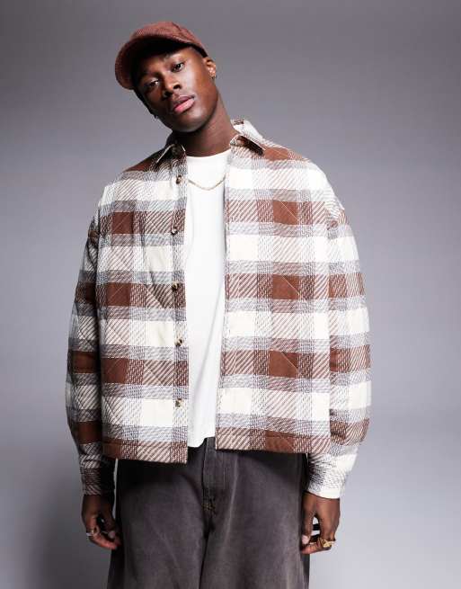 ASOS DESIGN - Camicia squadrata trapuntata oversize marrone a quadri