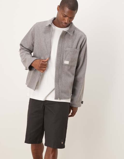 ASOS DESIGN - Camicia squadrata vestibilità comoda grigia con finitura spazzolata, etichetta e chiusura con zip