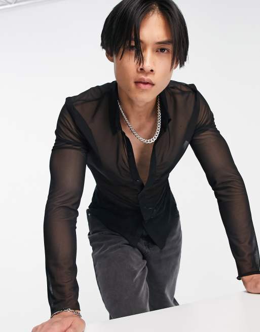 ASOS DESIGN - Camicia super skinny in rete nera con arricciature