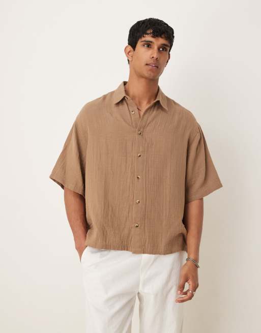 ASOS DESIGN - Camicia testurizzata vestibilità classica in mussola marrone