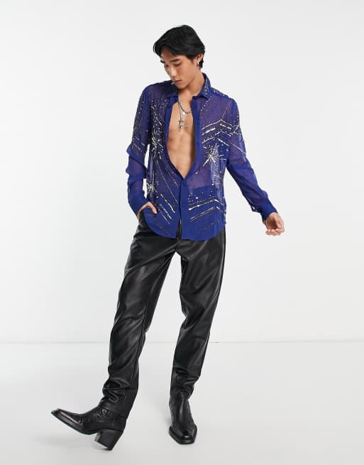 ASOS DESIGN - Camicia trasparente blu con decorazioni stile fuochi d'artificio