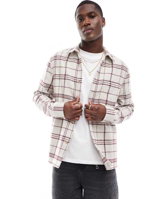 ASOS DESIGN - Camicia vestibilità classica in flanella spazzolata color crema a quadri larghi