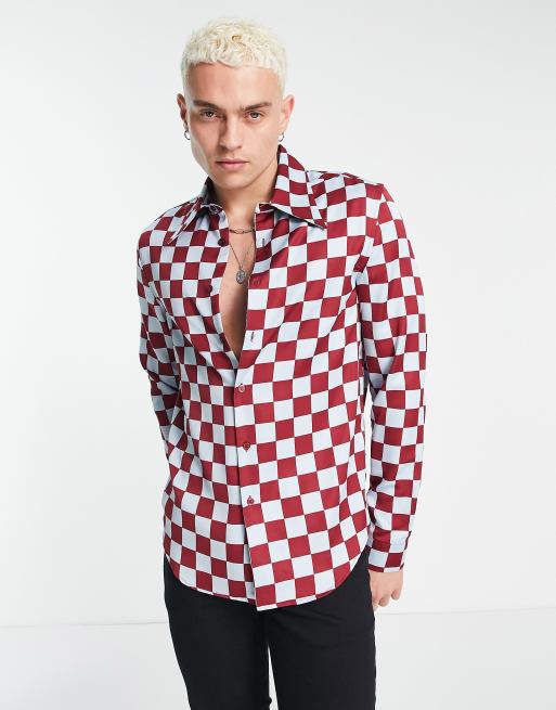ASOS DESIGN - Camicia vestibilità classica in raso a scacchi stile anni '70