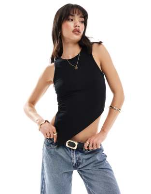 ASOS DESIGN - Canotta a vogatore con orlo a punta asimmetrico nera