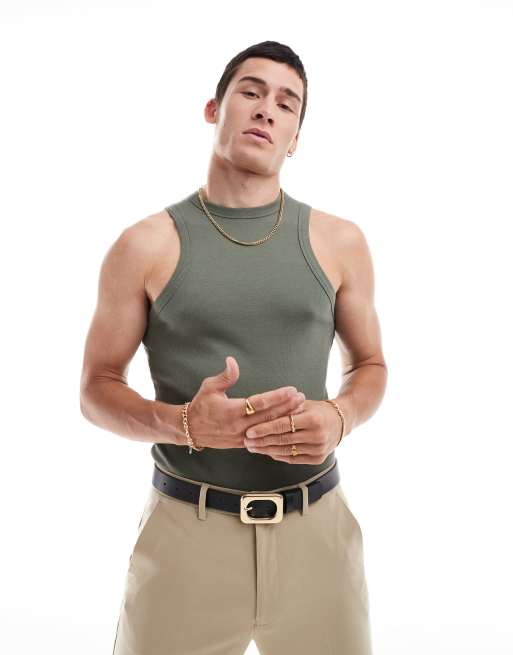 ASOS DESIGN - Canotta basic attillata con scollo a vogatore kaki