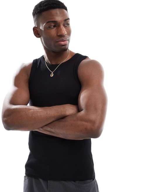 ASOS DESIGN - Canotta basic attillata girocollo nera a coste
