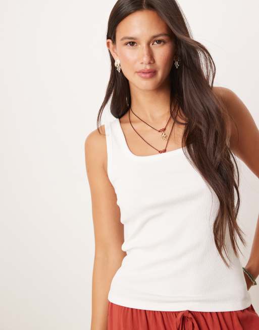 ASOS DESIGN - Canotta bianca con scollo squadrato profondo
