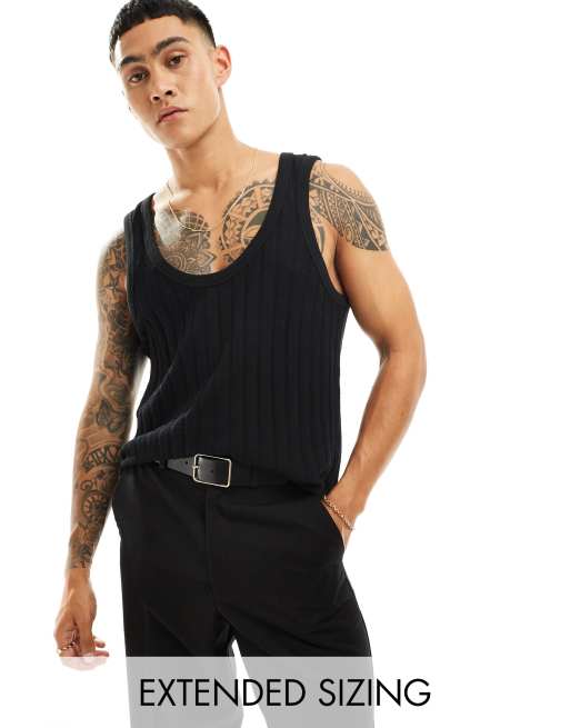 ASOS DESIGN - Canotta in maglia a coste larghe nera