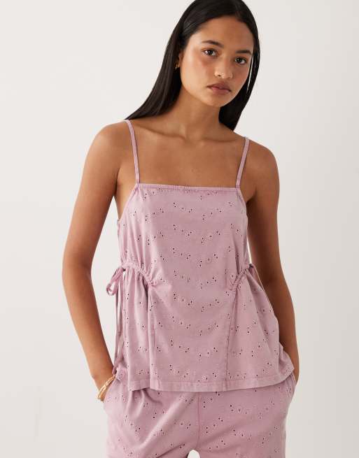 ASOS DESIGN - Canotta in pizzo lilla slavato con allacciatura laterale e pieghe in coordinato