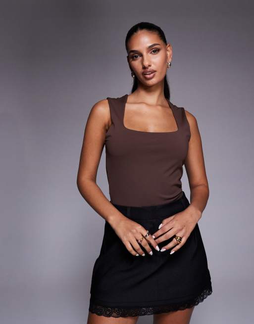 ASOS DESIGN - Canotta modellante color cioccolato con spalline larghe