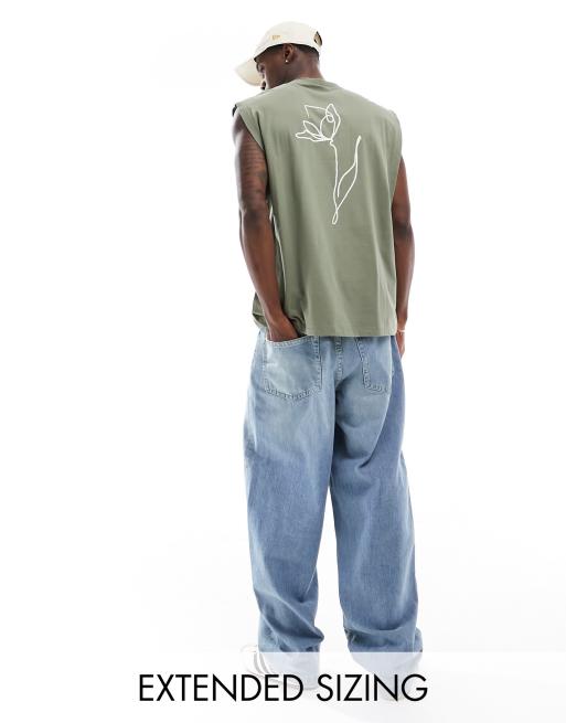 ASOS DESIGN - Canotta oversize kaki con stampa di fiore sul retro