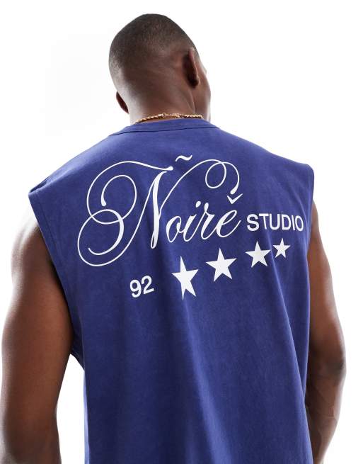 ASOS DESIGN - Canotta pesante squadrata oversize blu slavato con scritta