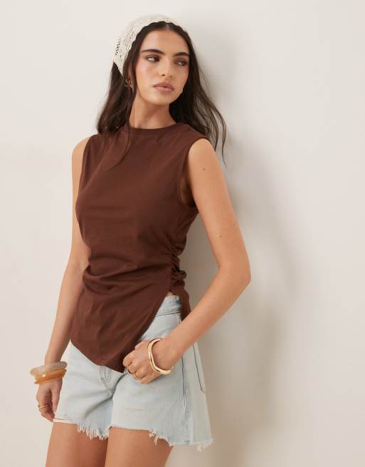 ASOS DESIGN - Canotta stretta in vita con orlo asimmetrico marrone