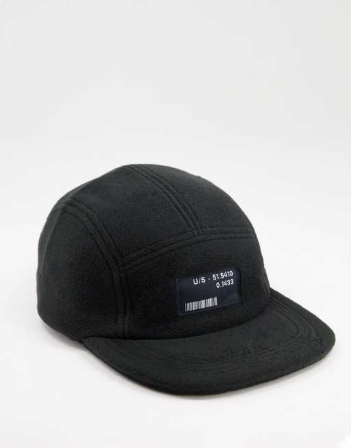 ASOS DESIGN - Cappellino con cinque pannelli in pile nero con logo