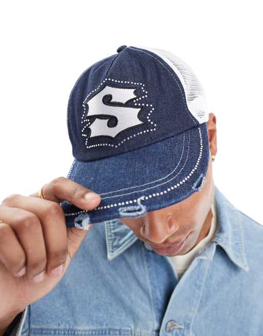 ASOS DESIGN - Cappellino in denim con cuciture a contrasto