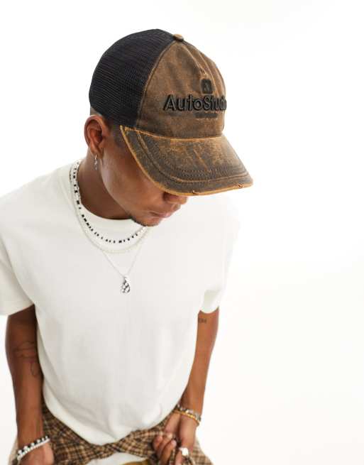 ASOS DESIGN - Cappellino trucker cerato marrone slavato
